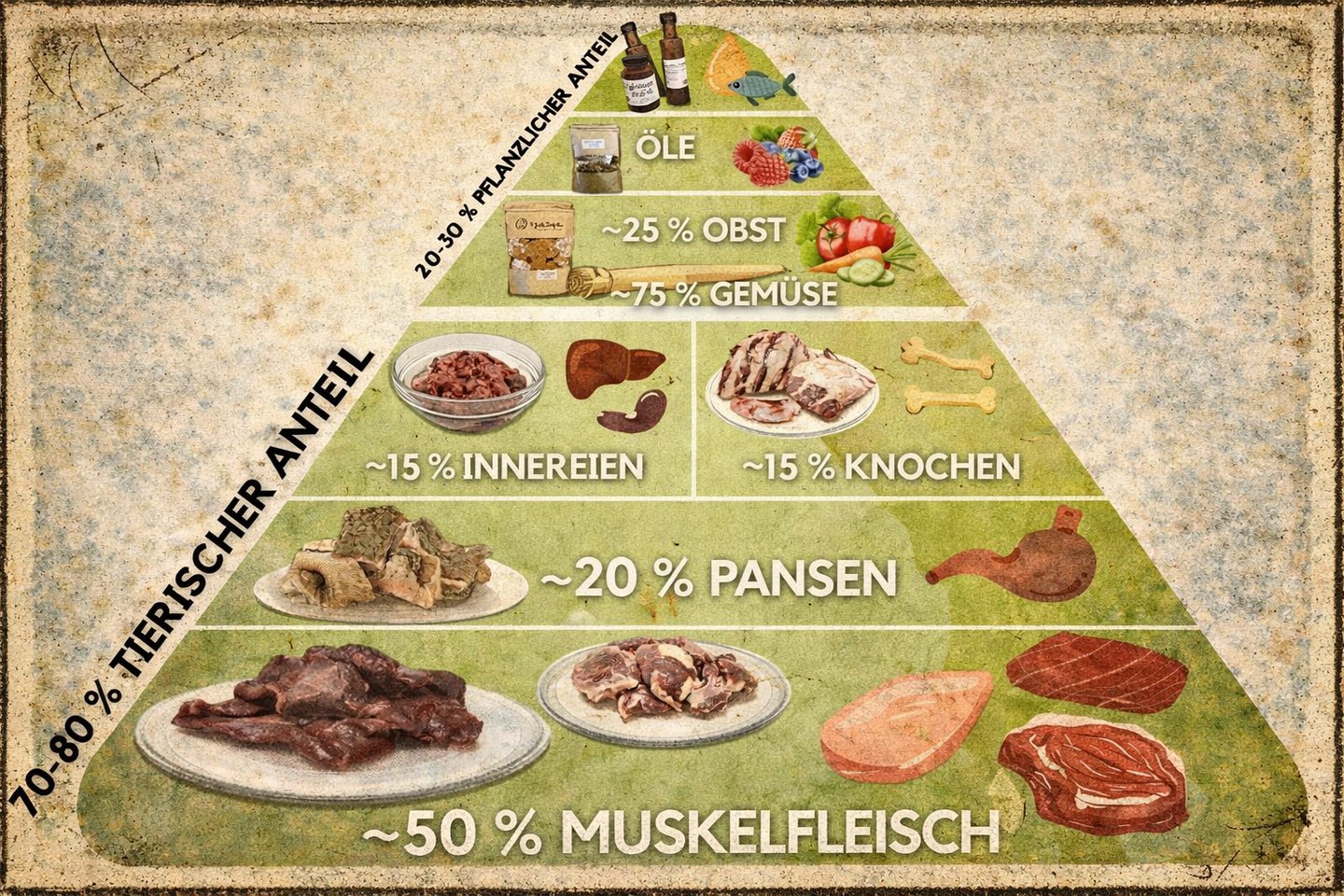 Bei der Rohfütterung berücksichtige ich die höhere Bioverfügbarkeit frischer, unverarbeiteter Zutaten. Viele Nährstoffe können vom Körper besser aufgenommen und verwertet werden als aus stark verarbeiteten Futtermitteln.